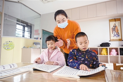 为满足群众对婴幼儿照护服务的需求,今年新罗区新增了5个托育机构、330个普惠性托位。新罗区立德育心托育园是2022年度市委、市政府为民办实事项目之一,让婴幼儿在“家门口”就可享受专业照护服务,在教育理念上根植于中国传统文化,融合西方先进教育方法,为孩子们打造一个丰富而养心的成长环境。图为12月14日,该园老师带着孩子们诵读国学经典《大学》的情景。