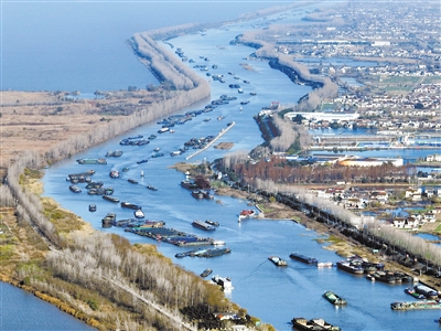 12月18日,货船行驶在京杭大运河江苏扬州段(无人机照片)。入冬以来,在京杭大运河江苏扬州段,装载煤炭、钢材、建材等货物的船舶在航道上有序航行,来往如梭,运河上呈现一派繁忙景象。 新华社发(孟德龙摄)