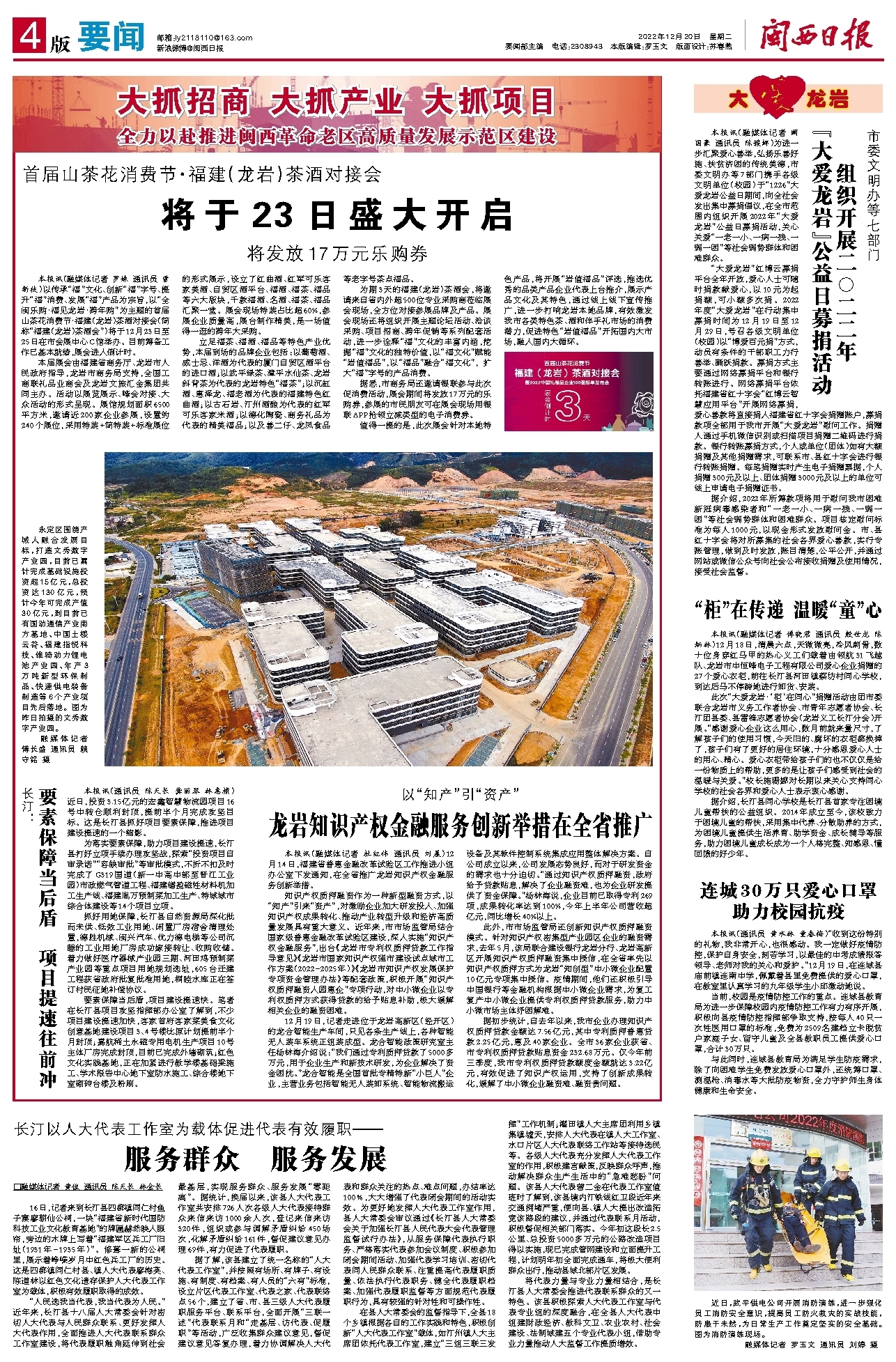 组织开展二○二二年“大爱龙岩”公益日募捐活动