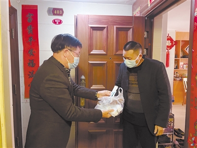 近日,新罗区北城街道北星社区发出共享防疫物资的倡议,搭起了防疫互助渠道。图为社区的民情网络员化身“快递员”,为有需要的居民送上药品。融媒体记者 曾俊钦 通讯员 翁苏妮 摄