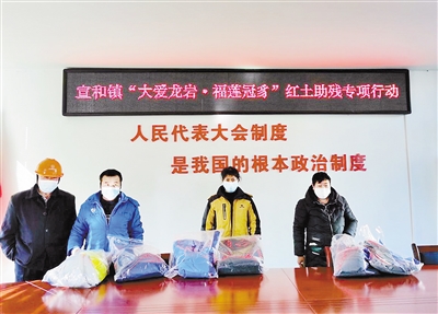 日前,连城县宣和镇结合“大爱龙岩·福莲冠豸”红土助残专项行动,开展“鸿星有爱·助残同行”衣物发放活动,为镇里的残疾人赠送爱心棉衣,并组织志愿者将爱心棉衣送到行动不便的残疾人的家中。此次活动共发放爱心衣物70件,让残疾人充分感受到党和政府、社会各界的暖心关爱。图为残疾人领取爱心棉衣的情景。 通讯员 黄水林 李晓芳 摄