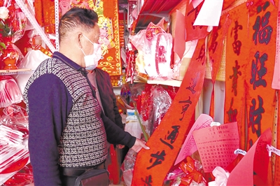 近日,连城一些市民在购买春联等饰品红红火火过大年。