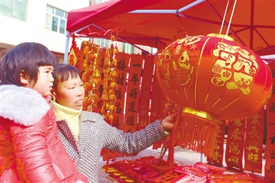 近日,长汀县馆前镇一群众在挑选文化“年货”。随着新春佳节的临近,福字灯笼、窗花剪纸等年货已经陆续上市,吸引着大家购买。