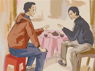 接下来,我便照例从村头逛到村尾,进东家,出西家。到每一家,家家都有客,老酒热上来,好菜端出来,非要你坐下喝几杯。我酒量差,每家只能喝一两口。走入小时候常在一起的玩伴昌发家,坐在木沙发上,说,酒就不必了,喝茶吧。
