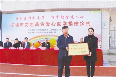 1月28日,在节后上班的第一天,深圳市龙岩商会来到上杭县溪口镇大洋坝小学开展“情系桑梓寒冬行 捐资助学暖人心”爱心助学捐赠活动,为大洋坝小学捐赠了打印机、电脑等第一批教学设施设备,后续将持续投入资金合计约50万元,可有效改善大洋坝小学的教学环境。