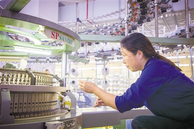 近日,笔者在新罗区龙雁组团银雁新城的新兴轻纺工业园看到,生产车间内机器轰鸣、热浪滚滚,在巨大的染整设备旁,工人娴熟地操作着机器,一匹匹白色布料经过漂白、染色、定型后,变成各色布匹产出,经包装后发往全国各地。据了解,新兴纺织生产项目是省、市、区重点项目,项目总投资30亿元,总建设规模为年产各类纺织品2万多吨。 通讯员 邓佳佳 摄