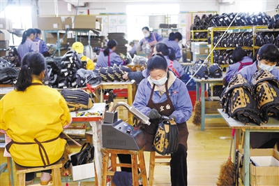 日前,在中国最大的棒球产业集聚区——连城县庙前台商投资工业集中区,宏国体育用品有限公司、久和运动器材有限公司等台商棒球企业正赶工生产国内外的棒球、棒球手套、棒球棒等产品订单,全力冲刺“开门红”。图为工人们在棒球手套生产线上作业的情景。