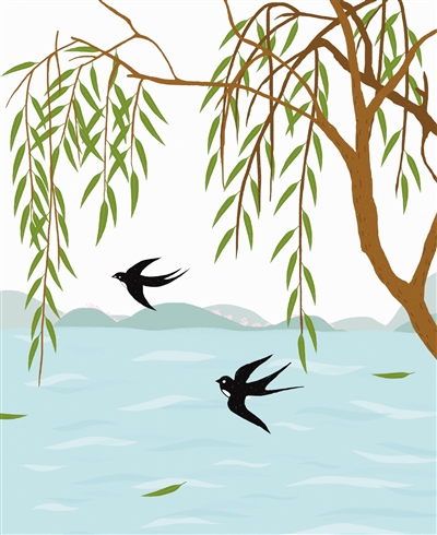 两条河道在出城的地方又合二为一。二水合一后,河道变宽,水面上不时叠起波纹,荡漾开去。河两岸,一边仍是伸延的城墙,一边是叫梅林的地方。梅林原先是种有不少梅树的,而今融入城市空间,梅树少见了;但沿河也修了路,并铺成栈道。路边,其中一段已杨柳成行。有风吹过,数不尽的叶子晃动着,波光闪闪,真是亮丽极了。且那波光,还可与水光相互映衬。路与河相伴,愿望有更多的杨柳成行栽下。那成行栽下的杨柳,自会伸延成一条绿化带。其实不管河道上下,沿河的路已相连打通,河边柳便可相连成行,相依相待。