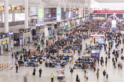 2月15日拍摄的上海虹桥火车站候车大厅。当日,2023年春运迎来最后一天。数据显示,今年春运全国铁路、公路、水路、民航累计发送旅客超过15亿人次。 新华社记者 王翔 摄