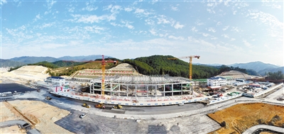 21日,笔者在龙龙铁路武平站项目施工现场看到,塔吊林立、机器轰鸣,工人们正有序施工、抢抓进度,站房雏形已现。据悉,该站位于武平县十方镇,以“一行白鹭上青天”为设计造型,目前已完成总工程量的65%。