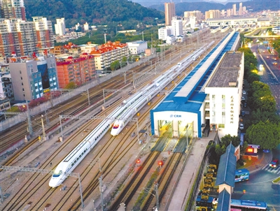 维护好的动车清晨又踏上征程。