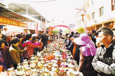 活动现场,村民摆开长桌,桌上摆满家家户户用锡壶装的糯米酒和各式各样的糕点、水果。场面热闹壮观,吸引众多游客、摄影爱好者。