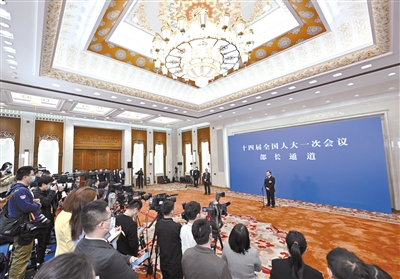3月7日,第十四届全国人民代表大会第一次会议举行第二场“部长通道”采访活动。 新华社记者 刘金海 摄