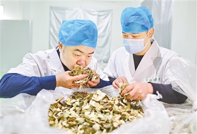 王书华在腾飞工业区加工基地原材料仓储中心认真检查中药材质量。