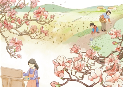 我还想在春天里,带上画板去画画。春花繁盛,我独爱玉兰。在众多玉兰花的古诗中,明代文征明《咏玉兰》最让我着迷。特别是前两句:“绰约新妆玉有辉,素娥千队雪成围。”玉兰先花后叶,一朵朵花蕾缀满枝头,如翩翩起舞的仙子,舒展广袖,洁白优雅,风姿绰约。我想请玉兰花当一次模特,我要画出她白玉般的花瓣和仙子般的花形。淡黄的宣纸,浓淡相宜的水墨,一笔笔勾描着。花开得真快啊,起笔落笔之间,玉兰花似乎已经缓缓绽放。我画的速度,赶不上一朵花开。当然,我笨拙的画技,又如何能画出玉兰的美来?但这又何妨,春天的花,心里住着一位神明,玉兰一定明白我爱它的心。