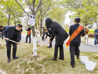 活动期间,邮储银行武平县支行精心制作如“节能低碳,邮储先行”“碳达峰碳中和,武平邮储在行动”等10个绿色低碳宣传树牌,并由工会发出植树捐赠倡议,全行员工纷纷认捐,为共建绿色美好家园,人人献出了一份爱心,以善之名,助力公益。之后双方青年员工们联合开展植树行动,依次给香樟、八月桂、红榕等树木挂牌、松土、施肥、填土,分工明确,现场繁忙却井然有序。经过大家的辛苦劳作,一颗颗新绿新植迎风挺立,在和煦的微风中萌发勃勃生机。