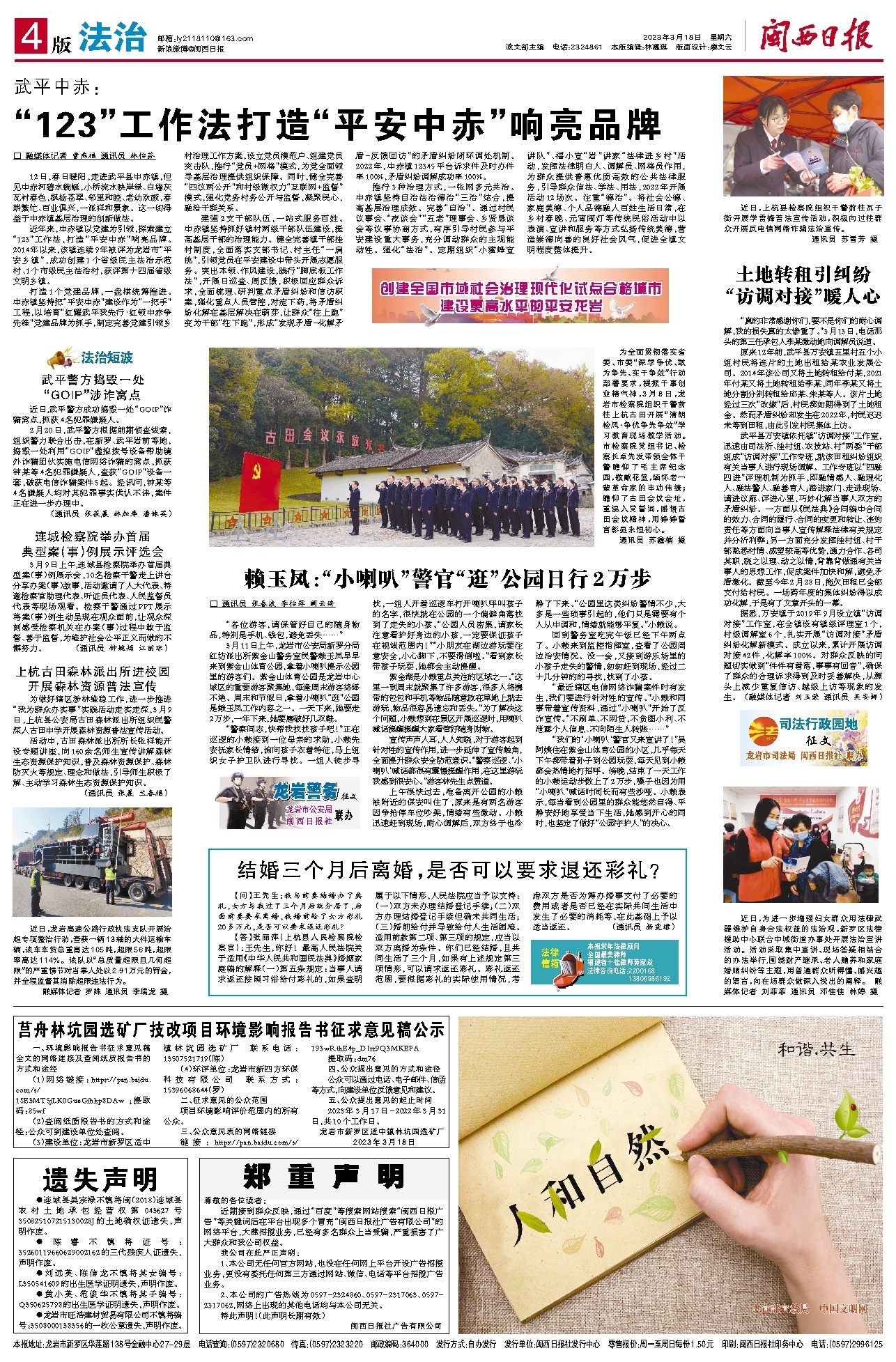 “123”工作法打造“平安中赤”响亮品牌