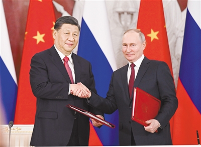 当地时间3月21日下午,国家主席习近平在莫斯科克里姆林宫同俄罗斯总统普京举行会谈。这是会谈后,两国元首共同签署《中华人民共和国和俄罗斯联邦关于深化新时代全面战略协作伙伴关系的联合声明》和《中华人民共和国主席和俄罗斯联邦总统关于2030年前中俄经济合作重点方向发展规划的联合声明》。 新华社记者 谢环驰 摄