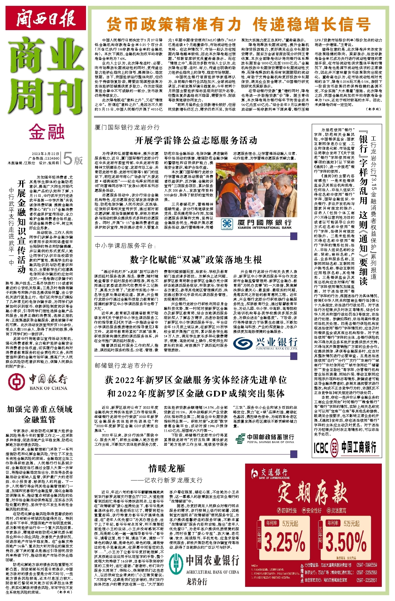 获2022年新罗区金融服务实体经济先进单位和2022年度新罗区金融GDP成绩突出集体