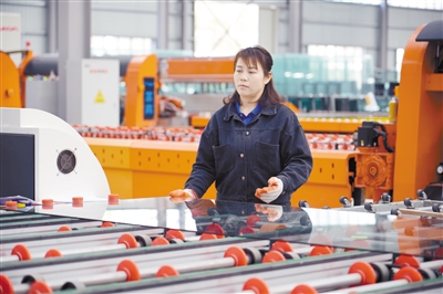 福建标茂玻璃制品有限公司位于龙岩高新区高陂平在村,是一家以玻璃深加工、销售为一体的综合型企业,拥有国内最先进智能型玻璃仓储系统、节能对流型钢化玻璃生产设备。主要生产高端建筑门窗、幕墙、汽车玻璃等产品。所有项目达产后可实现年深加工钢化玻璃120万平方米,年产值1.5亿元。图为20日工人在生产线切割钢化玻璃。 融媒体记者 郭亦斌 章宸睿 摄