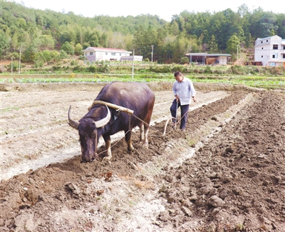 近日,在长汀县馆前镇坪埔村,村民在田间用耕牛犁地。春分时节,各地农民忙着春耕劳作,田间地头一派忙碌景象。 通讯员 黎寿钦 摄
