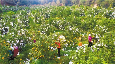 游客在茂谷柑种植基地体验采摘的乐趣。