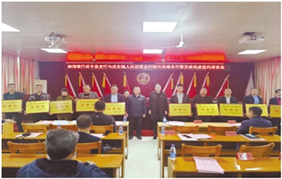 为全面贯彻落实乡村振兴战略部署,共谋银政合作发展之路。近日,邮储银行武平县支行和武东镇人民政府在武东镇政府四楼会议室举办“乡村振兴”政银战略合作签约暨党建共建座谈会,同时开展信用镇、信用村授牌仪式。