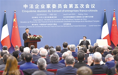 新华社北京4月6日电(记者 刘华)4月6日下午,国家主席习近平在北京同法国总统马克龙共同出席中法企业家委员会第五次会议闭幕式并致辞。