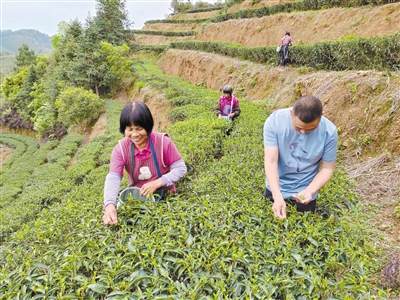 春风送暖,催吐新绿。日前,随着气温回升,“中国特色炒绿之乡”武平县桃溪镇各大茶园进入春茶采摘“黄金期”,茶农们抢抓晴好天气采摘春茶。近年来,该镇积极瞄准茶叶做文章,大力发展生态茶园,截至目前,全镇拥有茶园面积9268亩,有27家茶叶种植加工企业,全产业链产值累计超1.8亿元,小小的茶叶已成为当地群众增收致富的“金叶子”。 通讯员 李良英 练一诚 摄
