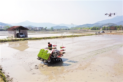 时下正值南方早稻、再生稻春耕春种时节。在全国产粮大县福建省浦城县,一辆辆旋耕机、插秧机在高标准农田间来回穿梭、耕地插苗,无人机在空中开展施肥作业,全程机械化种植为当地再生稻春耕春种按下了“快进键”。2022年,浦城县依托高标准农田建设,全程机械化培育种植再生稻6万亩,总产量达5.7万吨,全县水稻综合机械化率达81.9%。
