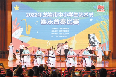 近日,2022年龙岩市中小学生艺术节器乐合奏比赛在龙岩东山小学举办。参加此次比赛的有中学组7支代表队、小学组12支代表队。比赛节目各具特色、精彩纷呈,展示出闽西青少年良好的艺术素养和朝气蓬勃、奋发向上的精神风貌,全面展现了闽西红土地器乐合奏的艺术风采。图为比赛现场。曾志明 方晨颖 陈钊安 摄