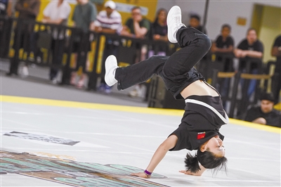 4月15日,刘清漪在女子组决赛中。当日,在2023年霹雳舞奥运积分赛里约热内卢站比赛中,中国选手刘清漪获得女子组亚军。 新华社记者 王天聪 摄