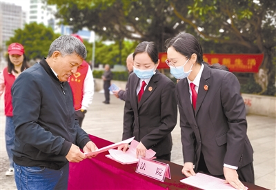 4月25日,武平县法院组织干警开展保护知识产权法律宣传活动。现场设立咨询台,向过往群众普及知识产权保护的相关法律知识,耐心解答群众提出的如何避免购得假冒商品、如何维权等法律咨询,对生产和生活中可能涉及著作权侵权、商标权侵权等情形作出提示,推动知识产权保护意识更加深入人心。 通讯员 陈立烽 李思福 摄
