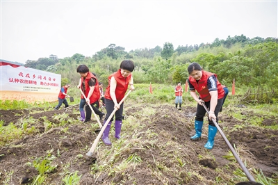 日前,龙岩市烟草专卖局机关党委组织各支部党员前往新罗区后田村开展“我在乡间有亩田”党员志愿者服务,促进粮食增产,助力乡村振兴。图为党员干部们在铲除杂草,起垄田地。