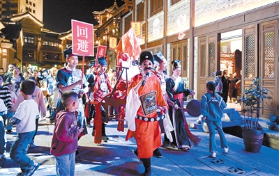 “五一”期间,武平兴坊梨园街演《县太爷招亲》。 融媒体记者 方晨颖 摄