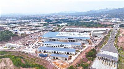 上杭金铜新材料循环产业园是省重点项目,总投资186亿元,占地约4000亩,分三期建设。目前,一期已入驻福建紫金铜业高性能铜合金精深加工项目、福建紫金铜箔年产2万吨高精度电解铜箔项目,并建成园区标准化厂房9栋。图为15日航拍的上杭金铜新材料循环产业园。 通讯员 林斯乾 摄