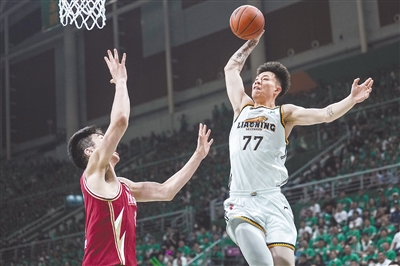 5月15日,辽宁本钢队球员张镇麟(右)在比赛中扣篮。当日,在辽宁沈阳举行的2022-2023赛季中国男子篮球职业联赛(CBA)总决赛第四场比赛中,辽宁本钢队以106比70战胜浙江稠州金租队,从而以4比0的总比分夺得总冠军。