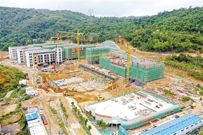 龙岩初级中学东肖分校项目总投资约1.9亿元,位于中心城区原志高动漫城西侧,是一所九年一贯公办学校,设45个教学班,共提供2160个学位。目前该项目1、3号楼正在进行内部装修,其他教学、办公楼和运动场建设正全速推进,预计8月中旬交付使用。图为日前航拍的施工现场。 融媒体记者 郭亦斌 摄