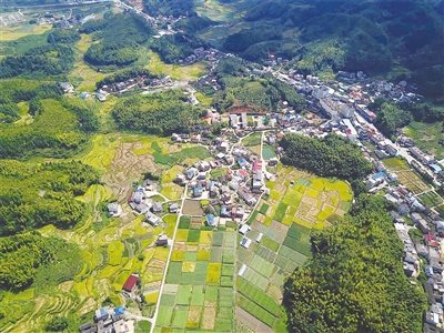日前翠绿簇拥的丘坊村鸟瞰