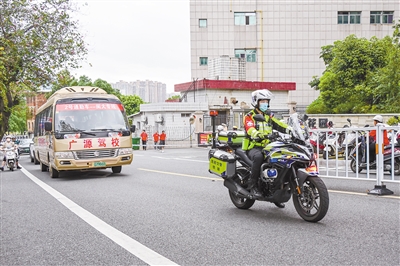 为进一步助力“大爱龙岩”新时代精神文明品牌建设,市融媒体中心组织开展了“爱心送考”活动,高考期间,爱心车主、爱心企业、公安交警在中心城区开展爱心接送服务,有需要乘车的考生可免费乘坐粘贴有“爱心送考”标识的车辆。图为“爱心送考”车在交警铁骑护送下驶向考场。融媒体记者 郭亦斌 摄