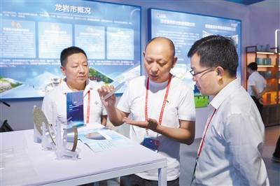 6月18日,与会嘉宾在龙岩展区看展品、听介绍,详细了解我市参展企业科技创新产品情况。 融媒体记者 谢泽铧 摄