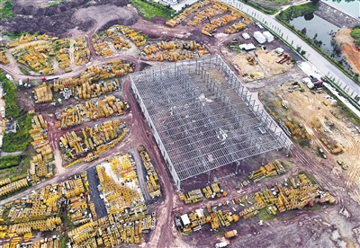 省重点项目漳平联星塔式起重机和施工升降机生产项目总投资10.8亿元,用地面积为186.63亩,主要建设内容为综合办公楼、员工宿舍楼、生产车间、材料仓库等,建成后可年产240台塔式起重机和1200台施工升降机,实现产值约4亿元,创税2200多万元。目前,该项目主体钢结构施工已完成。图为昨日航拍的项目现场。