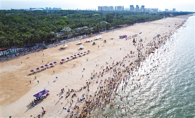 6月22日,人们在海口假日海滩“洗龙水”(无人机照片)。当日是农历五月初五,中国传统节日端午节。各地举办丰富多彩的文化娱乐活动,度过传统佳节。 新华社记者 樊雨晴 摄