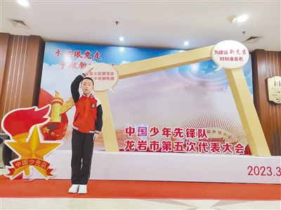 他热爱家乡,传承红色文化,家乡丰富的红色资源让红色革命文化的种子在他心中生根发芽。他是学校红色故事宣讲员,演讲的故事《少年英雄张锦辉》在闽西红色大讲堂播出。他喜欢客家文化,用自己小小的力量践行着弘扬传统文化,演唱的客家山歌《客家猜谜》获得校一等奖,参加永定区“儿歌全家总动员”获二等奖,软笔客家楹联获客家楹联福建省二等奖。2020年,获龙岩市“优秀少先队员”。