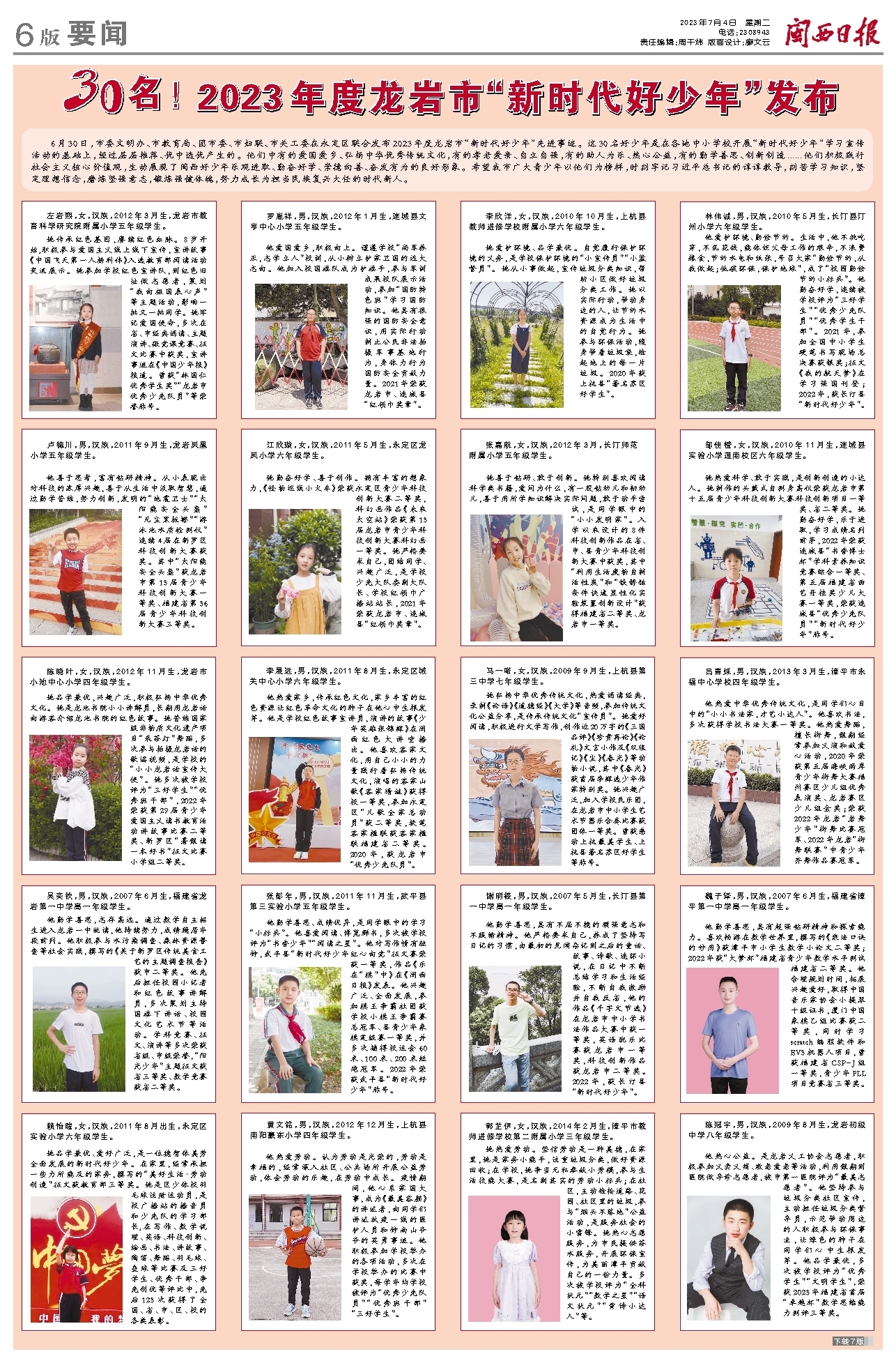 张彭年,男,汉族,2011年11月生,武平县第三实验小学五年级学生。