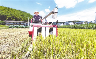 13日,在新罗区白沙镇小吉村,收割机在稻田里来回作业,农民脸上满是丰收的喜悦。今年新罗早稻播种面积21686亩,目前已逐步进入成熟期,预计总产量可达9100万公斤。 通讯员 温连光 卢阳沦 摄