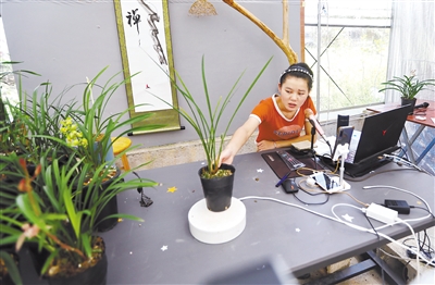 图为连城朋口的兰花圃在进行直播销售。