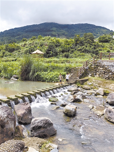 土楼里居住的人不多了,很想念有才气又勤劳的娭毑、会讲故事的钱叔婆、木工活很精湛的二舅、会做大襟衫的三舅、送我老皇历的战叔……但不管是不是已经住在新楼里,客家人热情好客的纯朴民风是不会变的,同学们又好好体验了一回。村里出来,沿着河边栈道,溪水流动,鸭子成群,水口伯公、田头伯公烟火亮着,远山含黛,美丽景色让我们放慢了脚步。山里的夏日气候,雨说下就下,哗啦啦的大雨密集地砸来,我们赶紧冲到路边的新建农家小楼前躲雨。忽然门打开,客家阿婆招呼我们进去,这么漂亮的房子,没嫌我们满脚的泥水,又搬椅子又倒水,还切出一大盘自家种的西瓜给我们吃,吃着甜脆的瓜等着雨停。雨后阳光出来了,我们告别阿婆,她送到门边喊着慢走,同学们也频频回头招手,心里暖融融的。