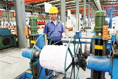 近年来,上杭县金铜产业持续实施“建链、强链、补链、延链”工程,推动金铜产业往精细化、高端化发展。目前,该县共有金铜产业企业83家,其中规模以上企业47家,形成千亿金铜产业集群。图为近日拍摄的上杭太阳电缆公司铜产品生产车间。 融媒体记者 郭亦斌 通讯员 林斯乾 摄