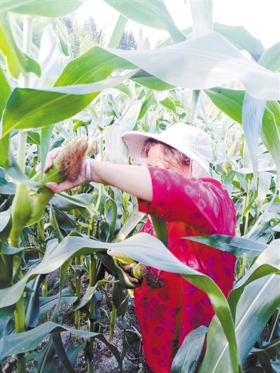 今春,连城县姑田镇郭坑村科技示范户周荣石、陈素清夫妻,引种了产量高、品质优的“普托拉”香甜型糯玉米优良品种。近3亩玉米地,经过夫妻俩科学管理,玉米丛长势喜人,目前已经进入采收上市期。图为陈素清在喜采籽粒饱满的玉米棒。 通讯员 周宗胜 摄